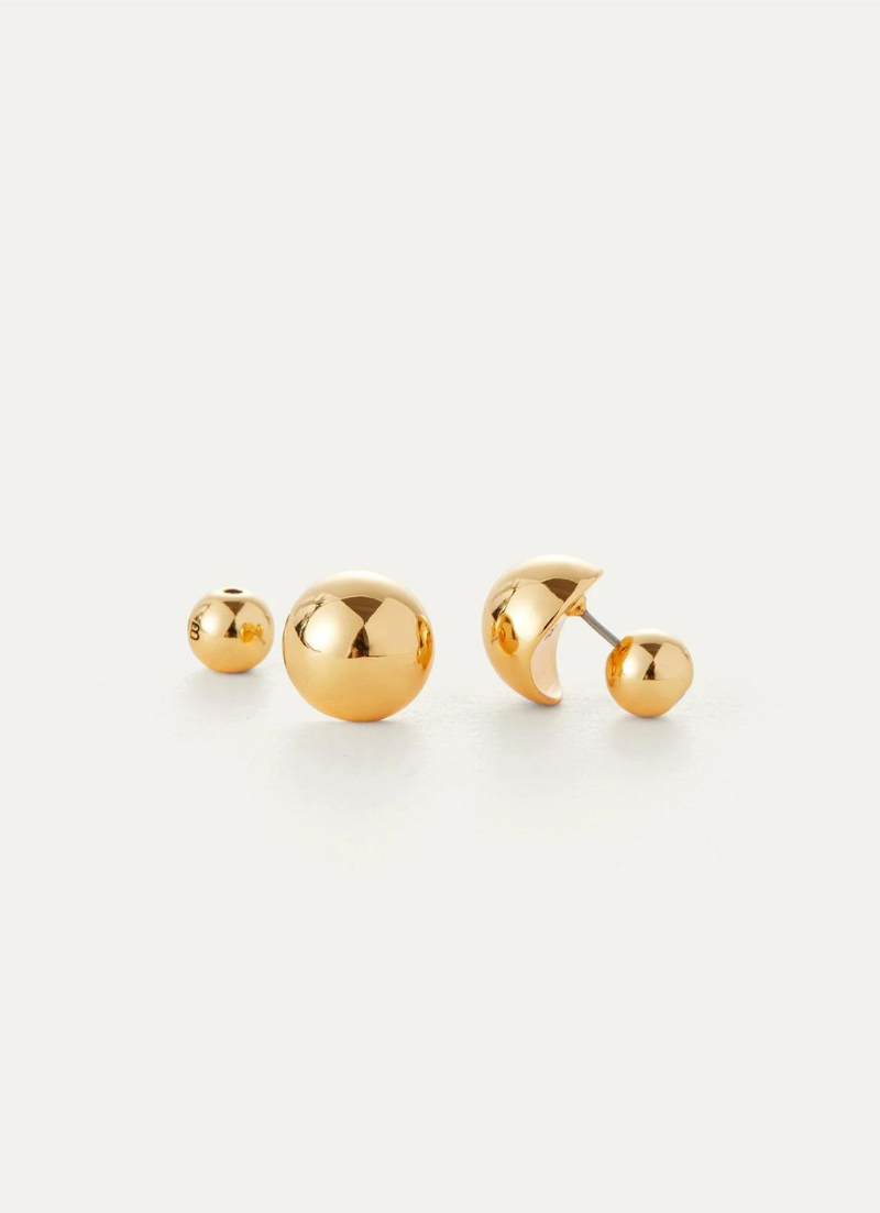 A luminous pair of earrings with a dome silhouette, creating the effect of a perfect sphere. This elevated design lays flat, curving toward your ear and slightly hugging the lobe. Finished in high-polish gold.