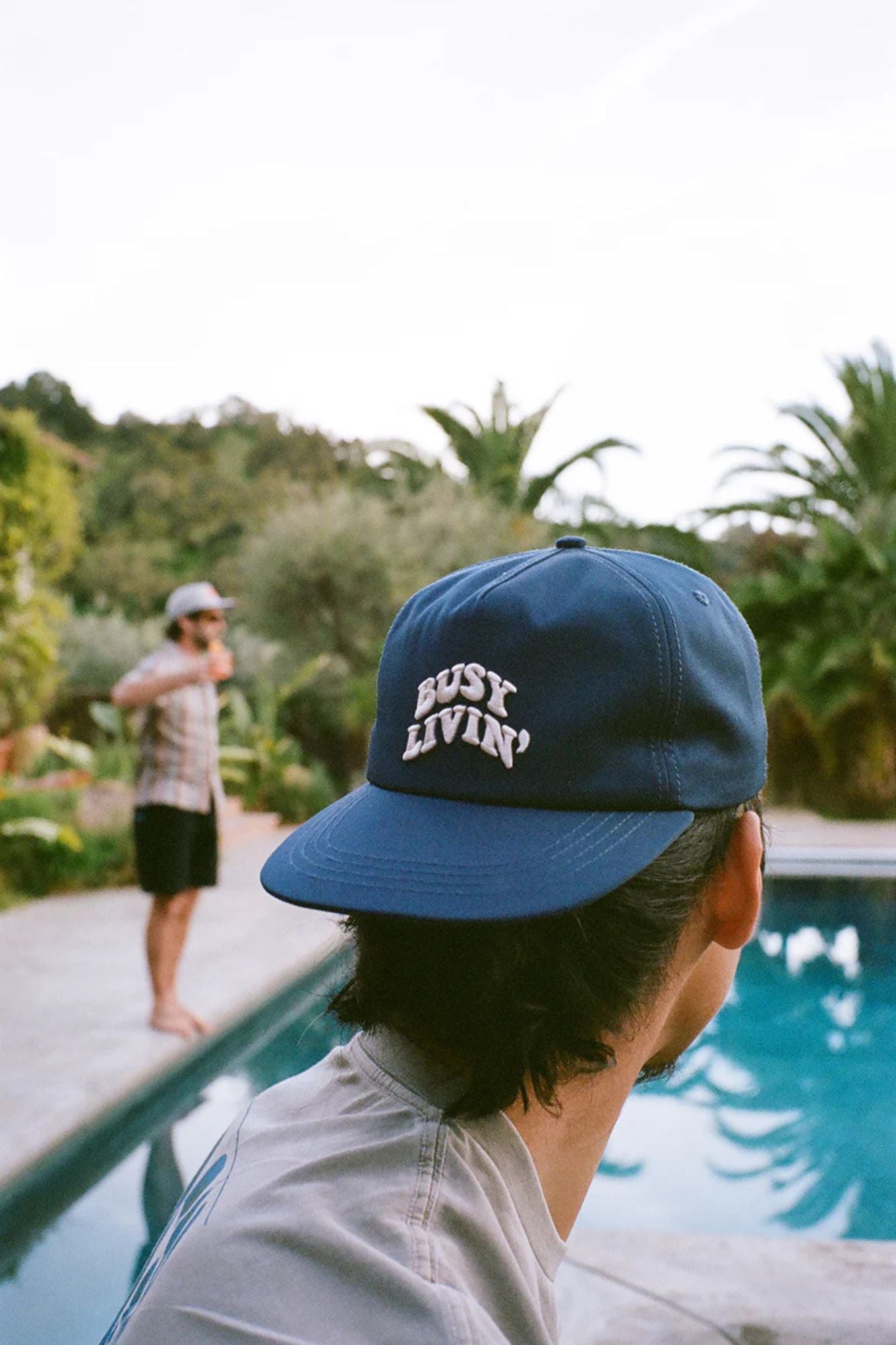 Live your best life in the Ridgemont hat! With raised embroidery, breathable eyelets, and an adjustable snap back closure, this 5 panel unstructured cap is perfect for a busy lifestyle. Stay comfortable all day with a tricot lined crown and moisture absorbing sweatband.