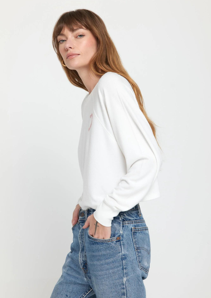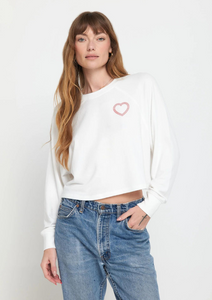 Sharing is caring. A relaxed fit, classic crew neck with raglan sleeves. Designed with a specialty heart graphic.