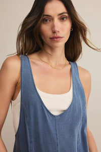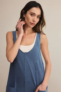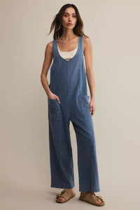 Slip into the Everyday Jersey Denim Jumpsuit for a look that’s as comfy as it is cool. Crafted from soft jersey denim, it features a flattering straight leg and ankle-length cut that keeps things fresh. With a scoop neckline, wide buttoned straps, and handy patch pockets, this jumpsuit blends classic charm with a playful twist—perfect for your go-to casual days.