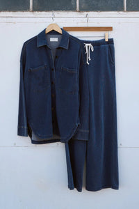 Say hello to your new favorite full-length pant! The Hunter Knit Denim Pant features sleek trouser pockets and a fully functional drawcord waistband, giving you a fit that feels just right. Crafted from lightweight knit denim, these pants blend comfort and style effortlessly—perfect for wherever your day takes you.