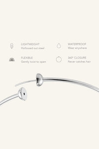Icon Hoops are lightweight and comfortable for all-day wear. Crafted for an effortless blend of comfort and elegance with a signature closure design that keeps them securely in place. They offer versatile styling potential for both casual and dressy occasions.