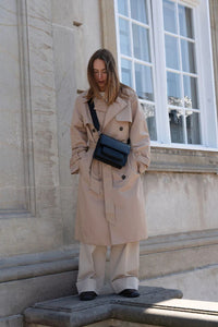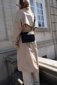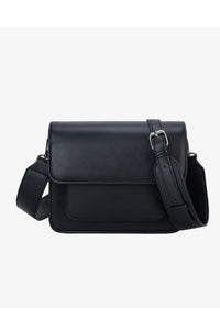 Crossbody bag with magnetic closure and adjustable strap. The bag has an outer front pocket and one large compartment with an inner pocket.