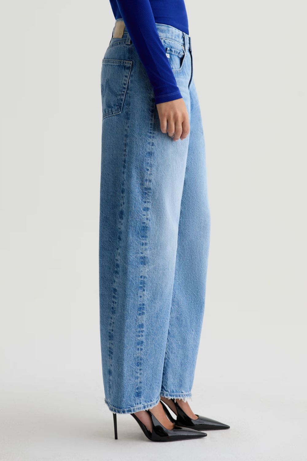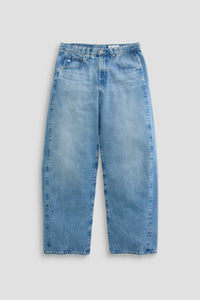 Meet Hattie, our fashion-forward high-rise barrel jean that's anything but ordinary. Crafted from premium Sioux Rigid Denim sourced from Italy's legendary Candiani Mill, these jeans feature a distinctly curved silhouette that moves beautifully through the leg. The Blueprint light blue wash showcases intentional whiskering, fading, and distressing at the hem—proof that imperfection is totally on-trend. Bold, unapologetic, and ready to become your new denim obsession.