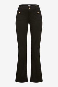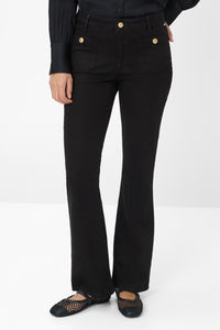 Meet the Shakira Bootcut Trouser—where timeless style meets modern comfort. These women's trousers feature a flattering slim bootcut silhouette with a regular waist that hugs in all the right places. The classic five-pocket design gets a chic upgrade with decorative gold buttons, while patch back pockets add authentic character. Crafted in our signature Cotton Dream satin blend, they deliver a luxurious soft sheen and brilliant color that won't fade. The innovative fabric mix ensures stretch and durability for all-day wear. Dressed in warm autumnal tones, these versatile trousers transition effortlessly from office to evening—proof that comfort and sophistication can absolutely be friends.