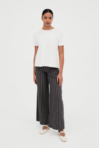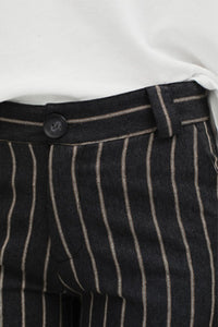 Slip into sophistication with the Vorota Trousers—where timeless pinstripe styling meets modern comfort. Featuring a flattering low rise and generously wide cut, these trousers deliver effortless elegance for any occasion. The secure fly closure pairs perfectly with a flat elasticated waistband at the back, giving you a sleek silhouette without sacrificing that all-day ease. Classic tailoring that actually feels as good as it looks.