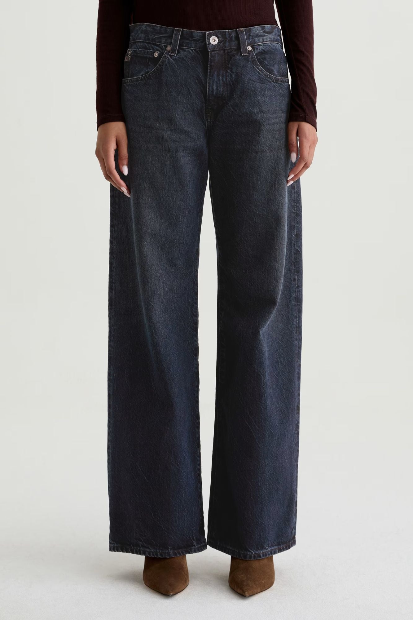 Adria Low-Rise Wide Leg Pant Step into effortless vintage style with Adria, a low-rise wide-leg pant that captures the coveted worn-in aesthetic without the wait. Crafted from premium Japanese Kaihara denim, this non-stretch fabric develops character with every wear. The AG-ed™ treatment replicates two years of authentic aging, delivering a naturally broken-in look with subtle fading and creasing that feels genuinely lived-in. Perfect for those seeking that coveted 90s-inspired silhouette with undeniable vintage appeal.