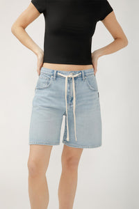 Elevate your style with Silver's on-trend Be Easy Drawstring Shorts! The comfortable high rise and adjustable drawstring waist make these denim shorts a must-have for warmer weather. With a relaxed fit and versatile light wash, these shorts will effortlessly elevate any outfit.