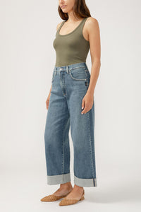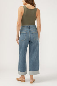 Introducing Be Easy Wide Leg Crop - the perfect blend of trendy and relaxed. These medium indigo wash jeans have a comfortable high rise, wide-leg silhouette, and cropped length. Made with Mid Stretch denim and featuring 5-pocket styling, they're the ideal addition to your warmer-weather wardrobe!