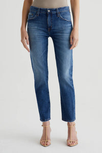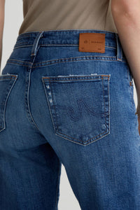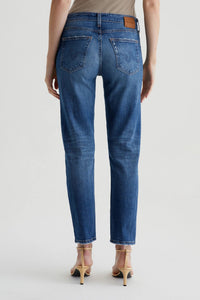 Experience the perfect blend of comfort and style with the Ex-Boyfriend Slouchy Slim jeans. These mid-rise, relaxed-fit women's jeans feature slim legs and frayed hems that create an effortlessly cool silhouette. Crafted from premium 11.75 oz. Italian Vintage Comfort Stretch Denim, they offer the authentic look of well-loved vintage jeans with strategic fading, whiskering, and subtle distressing at the pockets. The medium indigo stonewash with 14-year AG-ed™ finish delivers that coveted lived-in appeal you've been searching for.