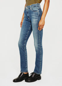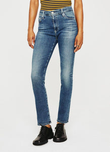The popular Mari high rise straight leg jean for women is featured here in a medium indigo wash with a 15 year vintage fade. The style fits easy around the hips before falling to a straight leg silhouette that slims down a bit at the leg opening. Premiere Stretch Indigo Denim offers lots of movement and an extra comfortable feel.