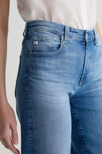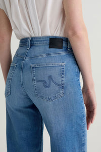 Discover the Saige Wide-Leg Crop—a modern essential that combines comfort with contemporary style. This mid-rise beauty features a cropped 27" inseam designed to flatter your frame, hitting just above the ankle for a refined silhouette. Built from durable 10.2 oz. Crosshatch Comfort Stretch Denim, you'll enjoy all-day wearability without sacrificing support. The medium wash paired with subtle whiskering delivers that coveted effortless aesthetic, while crisp clean hems elevate the overall look. Whether you're dressing up or keeping it casual, these versatile jeans transition seamlessly from day to night.