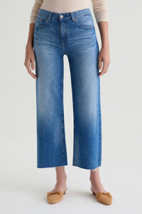 Meet your new go-to jean. The Saige Wide-Leg Crop combines Italian craftsmanship with everyday comfort, featuring premium denim from Candiani Mill that's built to last. The comfort-stretch fabric hugs your waist just right, while the AG-ed wash delivers that coveted lived-in look without the wait. Raw vintage hems add edge, and the wide-leg cut is perfectly proportioned for petite frames. Versatile enough for any occasion, this is the timeless piece your wardrobe has been missing.