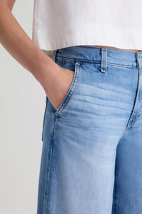 The Stella Low Slung Palazzo redefines effortless style with its relaxed silhouette and contemporary edge. Featuring an ultra-wide leg and low-slung waist, this palazzo pant delivers that coveted laid-back aesthetic without compromising on comfort. Crafted from premium 10 oz. Japanese Daytripper Stretch Denim, the fabric feels incredibly soft and lightweight while providing just the right amount of give for all-day wearability. Trouser-inspired slant pockets add functional sophistication, while raw hems complete the understated, modern look. Available in a versatile medium wash, the Stella is your go-to piece for effortless, fashion-forward dressing.