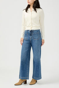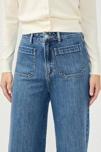 Elevate your style with Silver's Vintage Ankle Wide Leg jeans! Featuring a 70s-inspired silhouette, these high rise jeans offer a flattering fit and just the right amount of stretch for all-day comfort. With a medium indigo wash and retro details like patch pockets and a wide leg, these jeans bring a touch of vintage charm to any outfit.