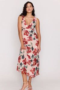 Effortlessly chic and undeniably flattering, the Arabella Bias Midi Dress from MINKPINK is your go-to piece for sun-soaked getaways and warm-weather adventures. The semi-fitted silhouette features elegant V-necklines adorned with embroidery details on both front and back, creating a sophisticated yet playful vibe. A convenient side zip and maxi length offer ease and elegance, while the vibrant red floral print brings a burst of joy to any outfit. Pair with sandals for a relaxed beach look or dress it up with heels for evening charm.