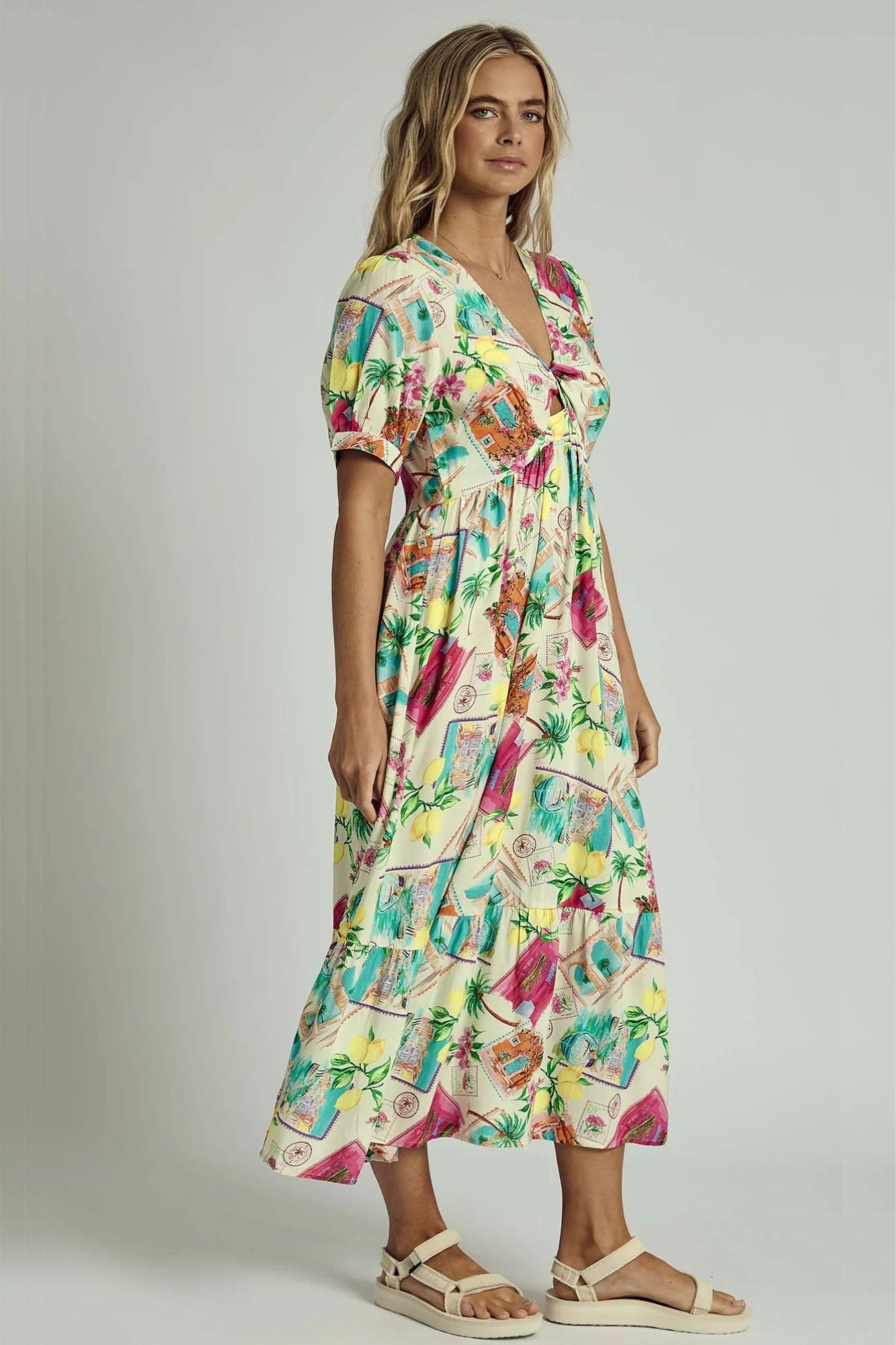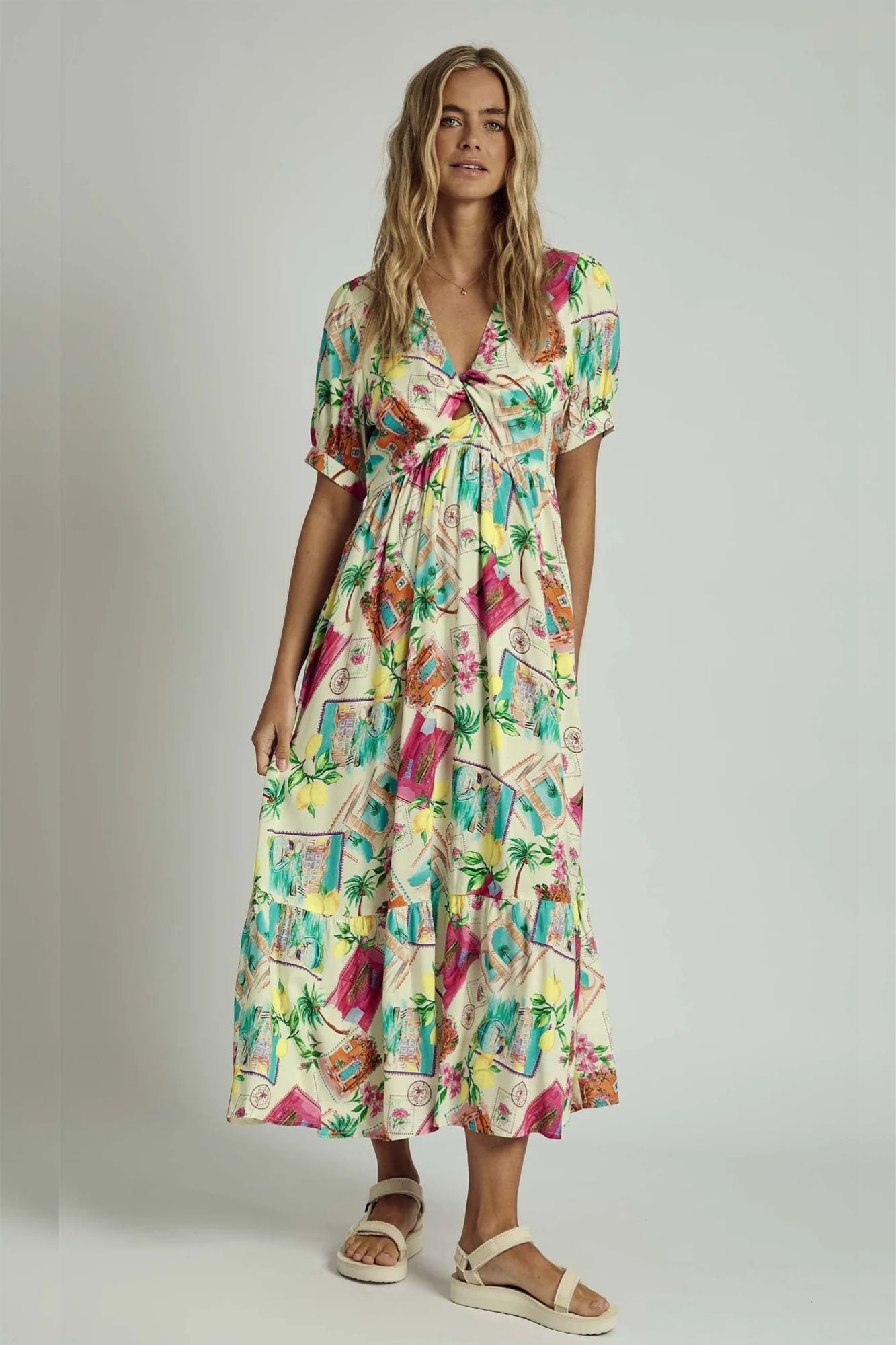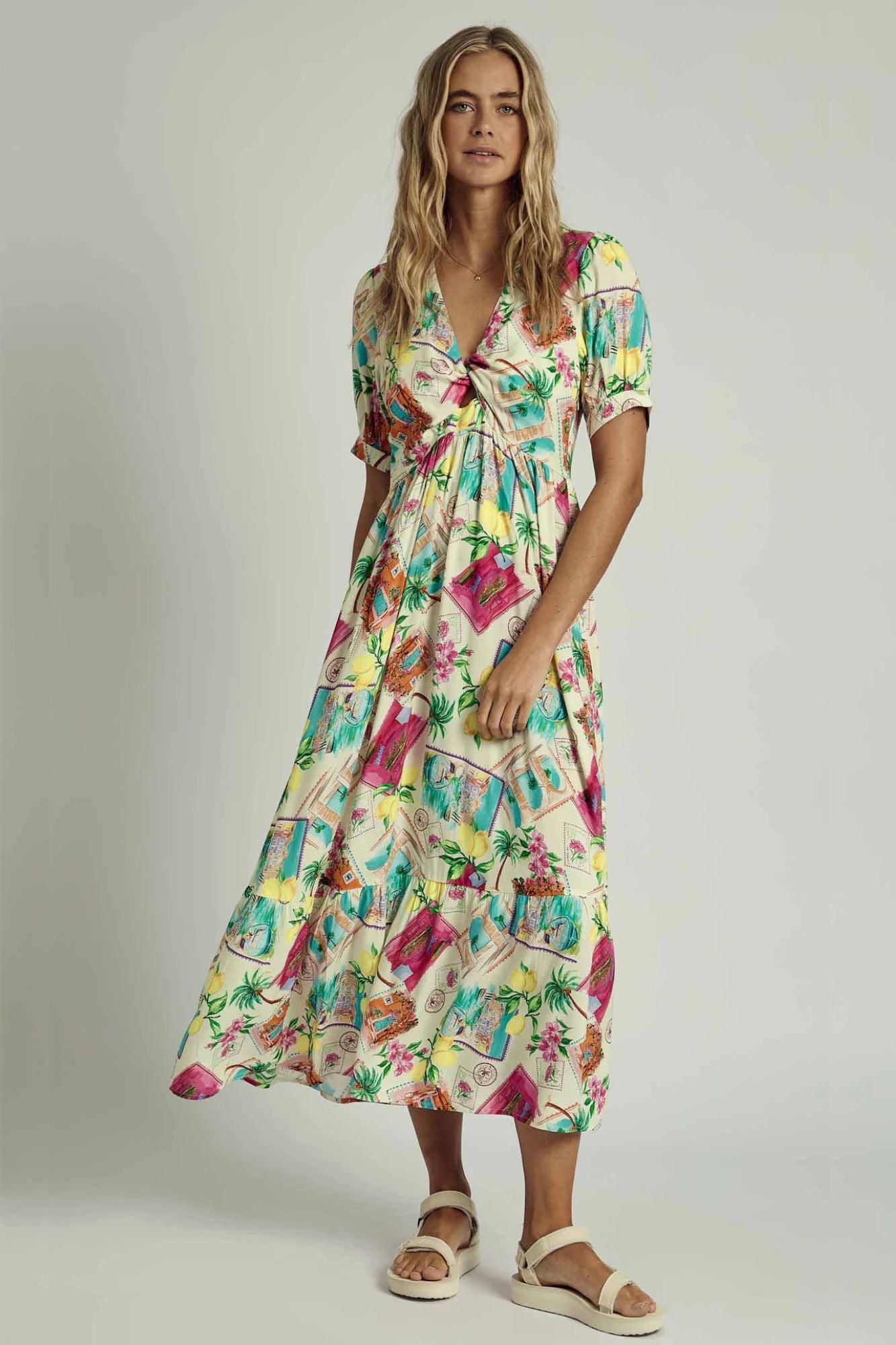 Summer Scatter Twist Midi Dress