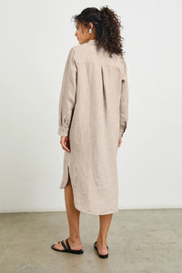 The Val Dress is the perfect shirt-dress for any day trip. Made from luxe heavy linen, it features full-length natural shell buttons, a high-low hem, and side-slits for added style. Stay comfortable and chic with the Val Dress!