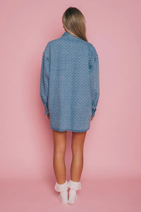 Your go-to denim jacket just got a romantic upgrade. The Denim Heart Jacket blends timeless style with Valentine's charm—crafted from a soft cotton-polyester blend with vintage-inspired brushed silver hardware that catches the light just right. Dropped shoulders and oversized proportions create that effortlessly cool silhouette, while two front chest pockets keep things practical. Designed to fit generously oversized, it's the perfect statement piece for layering. Prefer a more fitted look? Size down for a tailored feel.