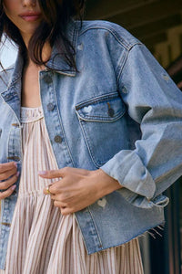 Unleash your versatility with the Sofia Jacket. From dressing it up to dressing it down, this classic jean jacket is the ultimate fashion chameleon. Made from true cotton denim, it's the perfect mix of nostalgic charm and modern style. A wardrobe must-have!
