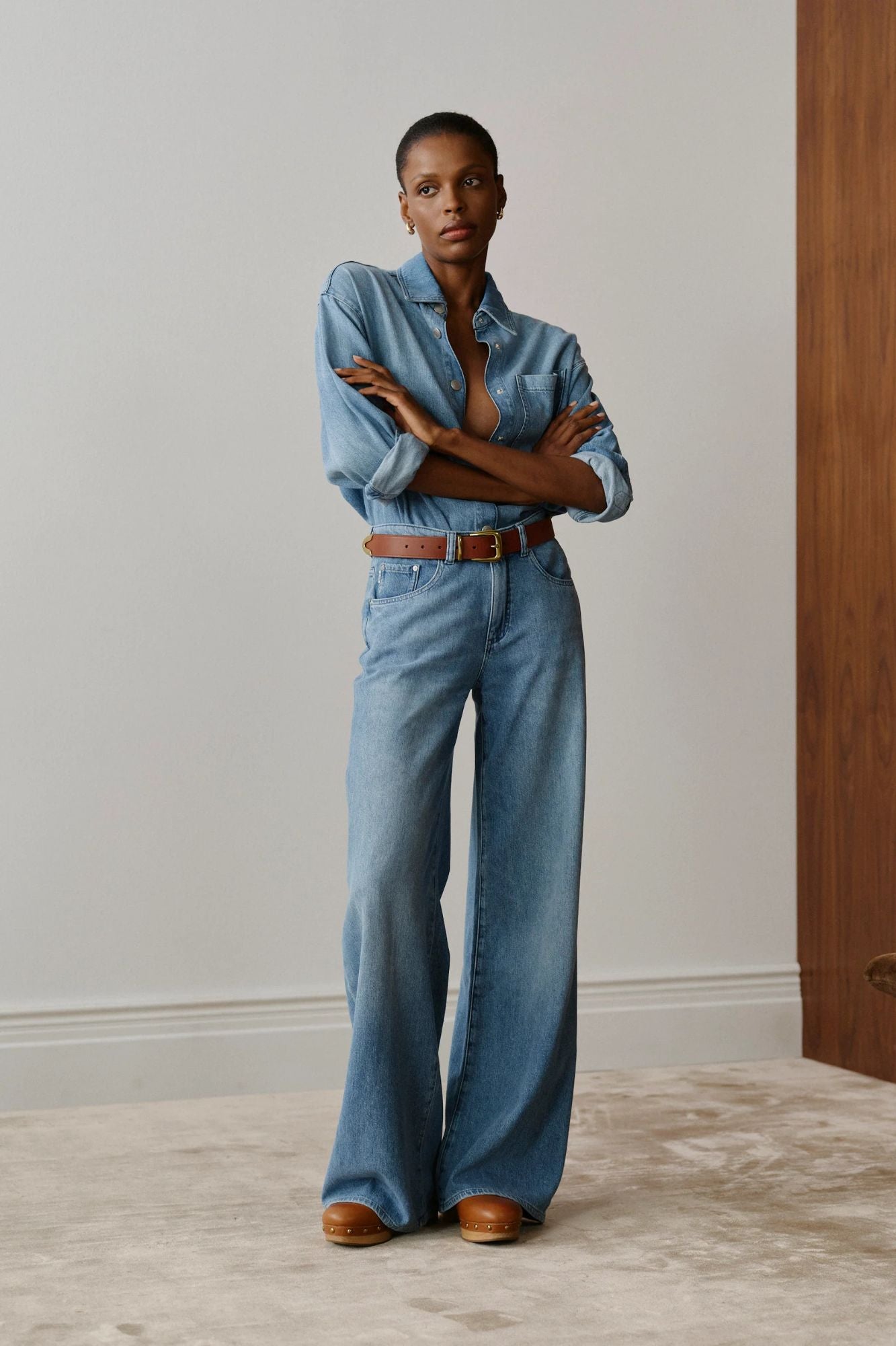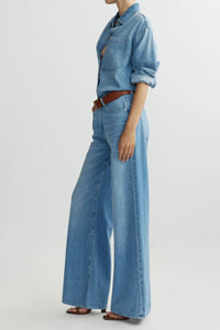 Alex Baggy Wide Leg Low Rise Jeans deliver effortless cool with a slouchy, relaxed silhouette that works with everything. The Riverbank Aura wash features soft mid-indigo tones with subtle fading for authentic character. Silver hardware and khaki stitching add refined details, while the clean hem and ecru back patch complete the understated aesthetic. Perfect for those who prioritize comfort without compromising on style.
