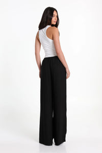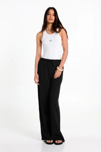 Discover ultimate comfort and style with Ginny Pants! These relaxed fit pants in classic black come with an elasticated waist and drawstrings for a perfect fit. Made with a luxurious linen blend fabric, they also feature side pockets for added convenience. Upgrade your wardrobe with Ginny Pants today!