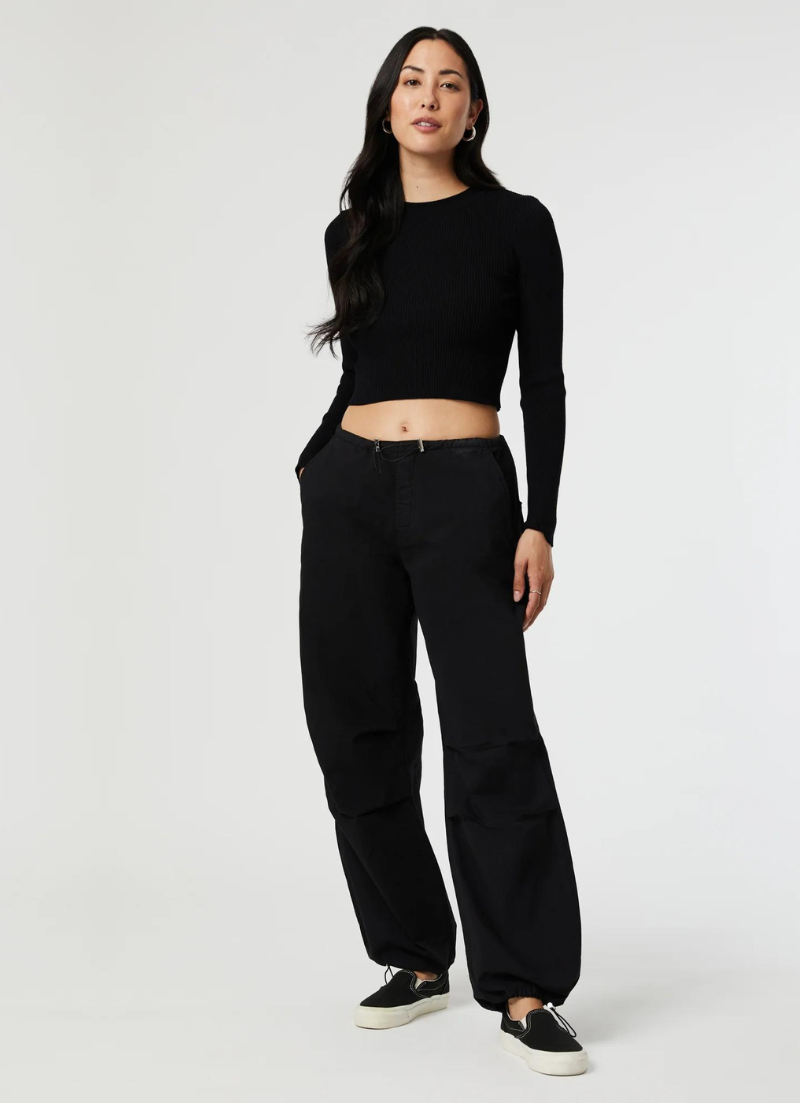 Super-wide and baggy with a sporty vibe, these parachute pants are cut from lightweight, stretch cotton. The shockcords at the waist and hem allow you to wear them high or hip-slung and adjust the legs from rushed to relaxed for a true customizable fit.