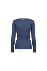 Elevate your everyday wardrobe with the Elaine Seamless Silk Long Sleeve Tee—a versatile essential that effortlessly transitions from layering piece to standalone statement. Crafted from a sumptuous silk and cotton blend, this fitted tee delivers a luxurious feel against your skin while maintaining breathable comfort. The delicate lettuce-edge hems and seamless construction create a polished, feminine silhouette that flatters and moves with you. Whether styled under a blazer or paired with your favorite jeans, this sophisticated piece brings understated elegance to any look.