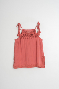 Elevate your summer wardrobe with this double gauze halter top. With adjustable straps and intricate lace detailing, it offers both style and comfort. Made from soft, double-cotton gauze, this top is perfect for any warm weather occasion. Embrace the versatility and charm of this must-have piece!