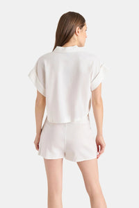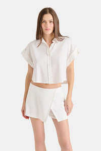 The Ilara Top is a breezy blend of linen and rayon, perfectly cropped for a flirty, fresh look. With its button-up front, it’s easy to style and even easier to love. Whether you’re dressing up or keeping it casual, this top adds a playful twist to your wardrobe essentials.