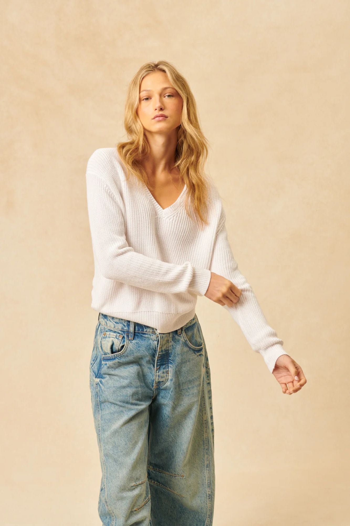 Add a touch of elegance to your wardrobe with our stylish Leo Pullover! Crafted in a soft dove colour and featuring a lightweight knit, this v-neck sweater is comfortable and versatile. Elevate any outfit with its neutral color and effortlessly chic design.