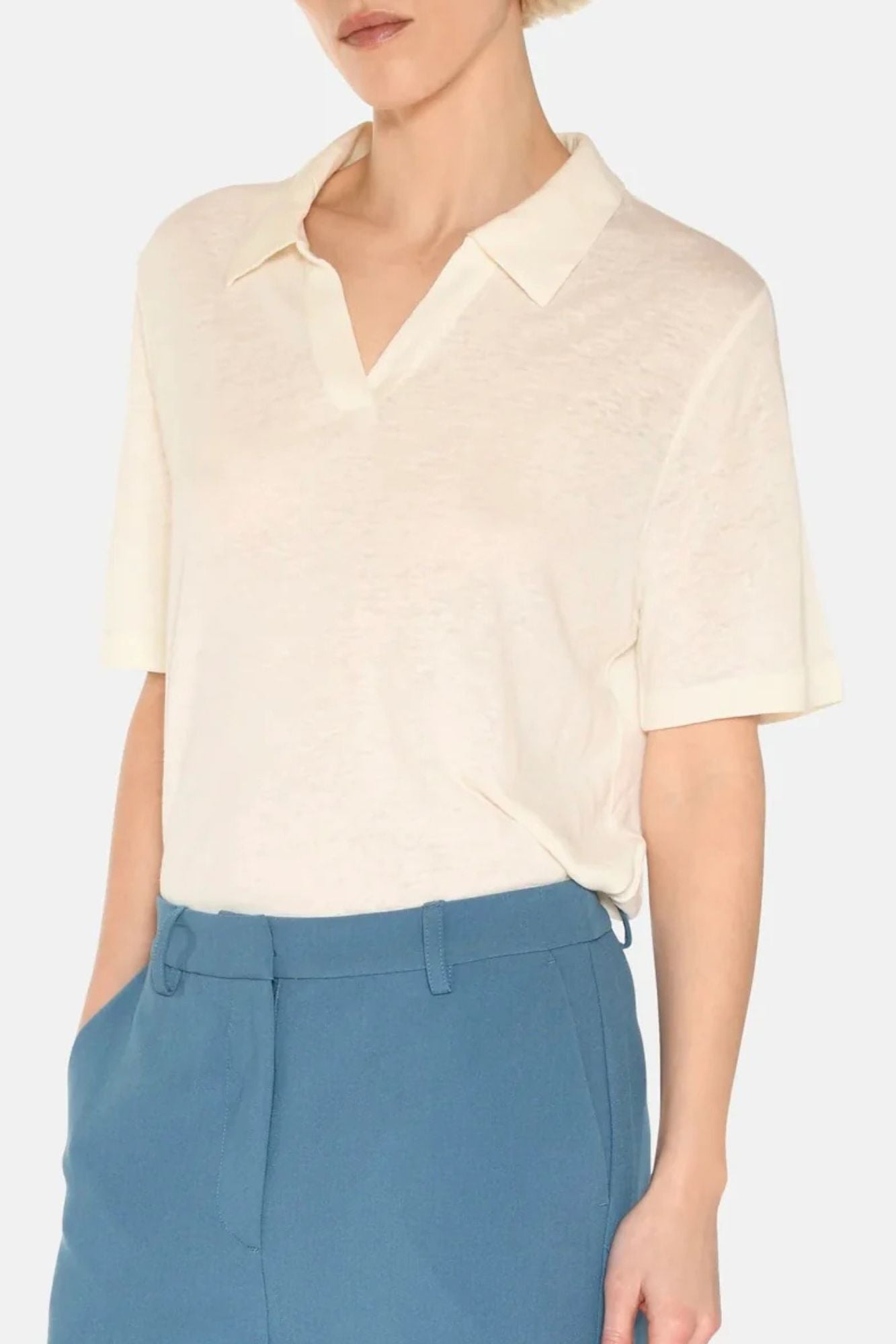 The Petra Polo Tee combines classic style with a modern twist. With a flattering v-neck and a blend of linen and modal, this shirt offers a natural, structured look with a smooth and soft finish. Upgrade your wardrobe with this light and sophisticated piece!