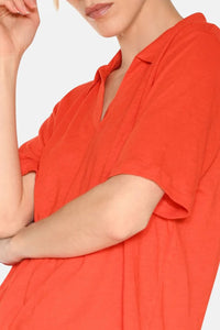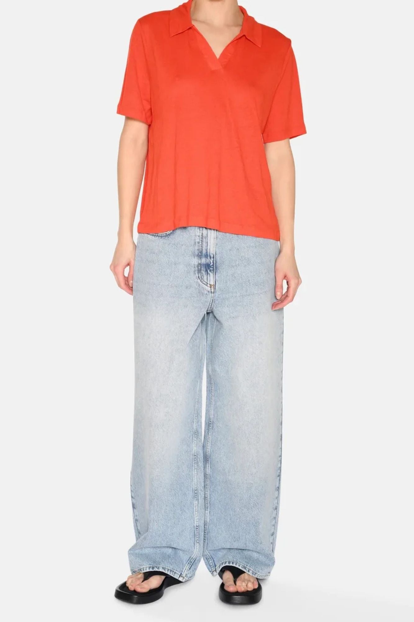The Petra Polo Tee combines classic style with a modern twist. With a flattering v-neck and a blend of linen and modal, this shirt offers a natural, structured look with a smooth and soft finish. Upgrade your wardrobe with this light and sophisticated piece!