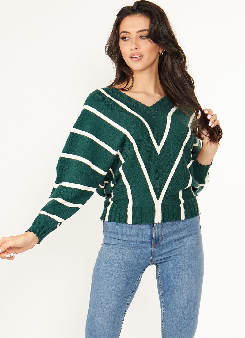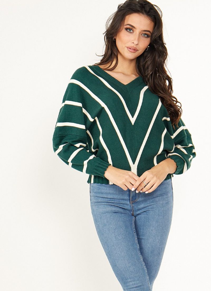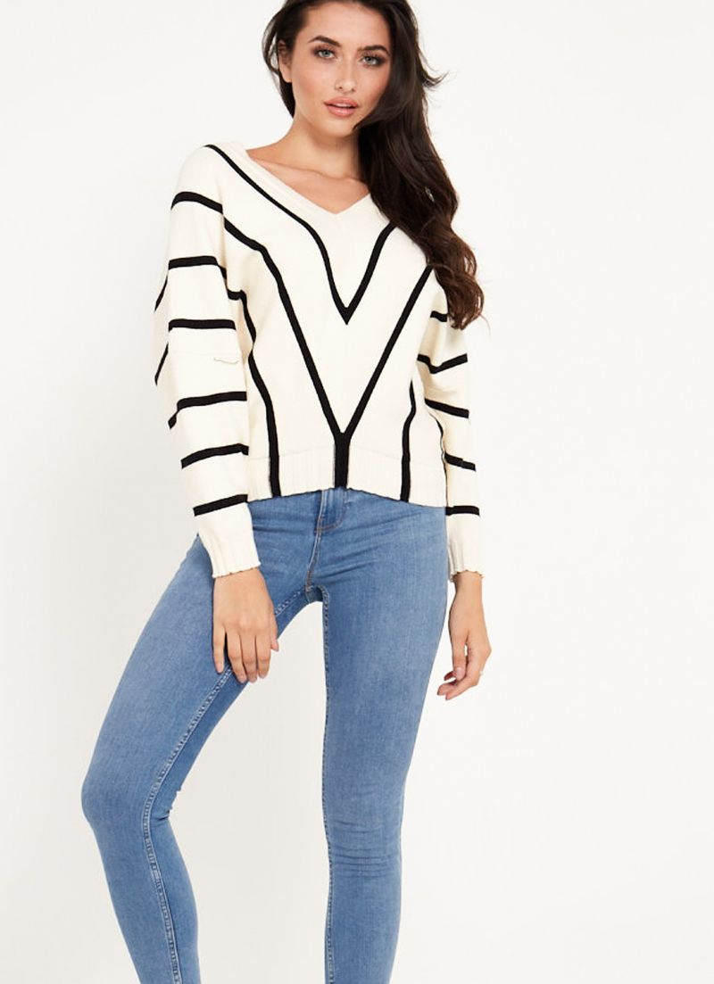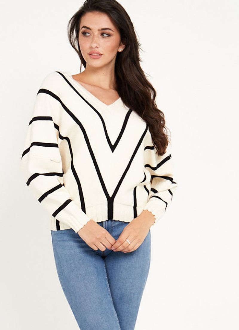 A perfect throw on sweater for the colder months. Featuring a v neck, ribbed cuffs and hemline and a relaxed fit. Wear it off the shoulder for some extra style.