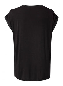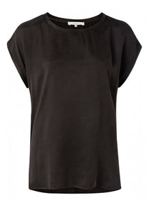 It's a blouse and it's a t-shirt and it's a beautiful essential. Soft and drapey, this jersey cupro blend T-shirt features a round neck and short sleeves. Designed with a mixed fabric (front vs back), and rounded front hem.