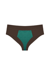 huha's cheekiest style outside of a thong, this is a flattering, butt-contouring cut with half-cheek coverage. Soft yet structured, it stays put without digging in. The Cheeky has a low-mid rise with a deeper side, cuffed waistband, and visible front panel.