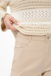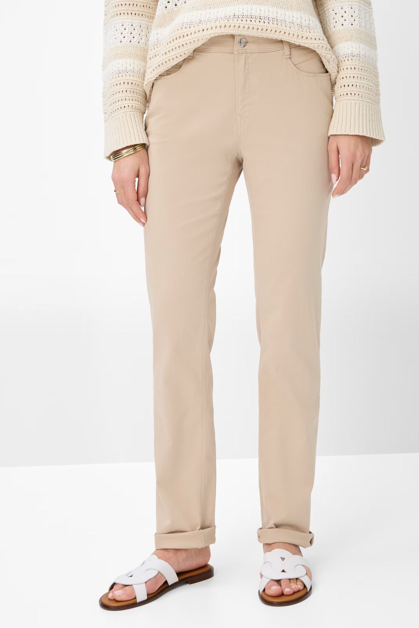 Introducing the versatile Mary Pant. A must-have addition to your wardrobe, these five-pocket pants offer a comfortable, regular fit with a straight cut and regular waist. The luxurious satin fabric with an atlas weave provides a soft touch and lustrous shine. Made from a sustainable cotton mix, these pants offer both style and comfort.