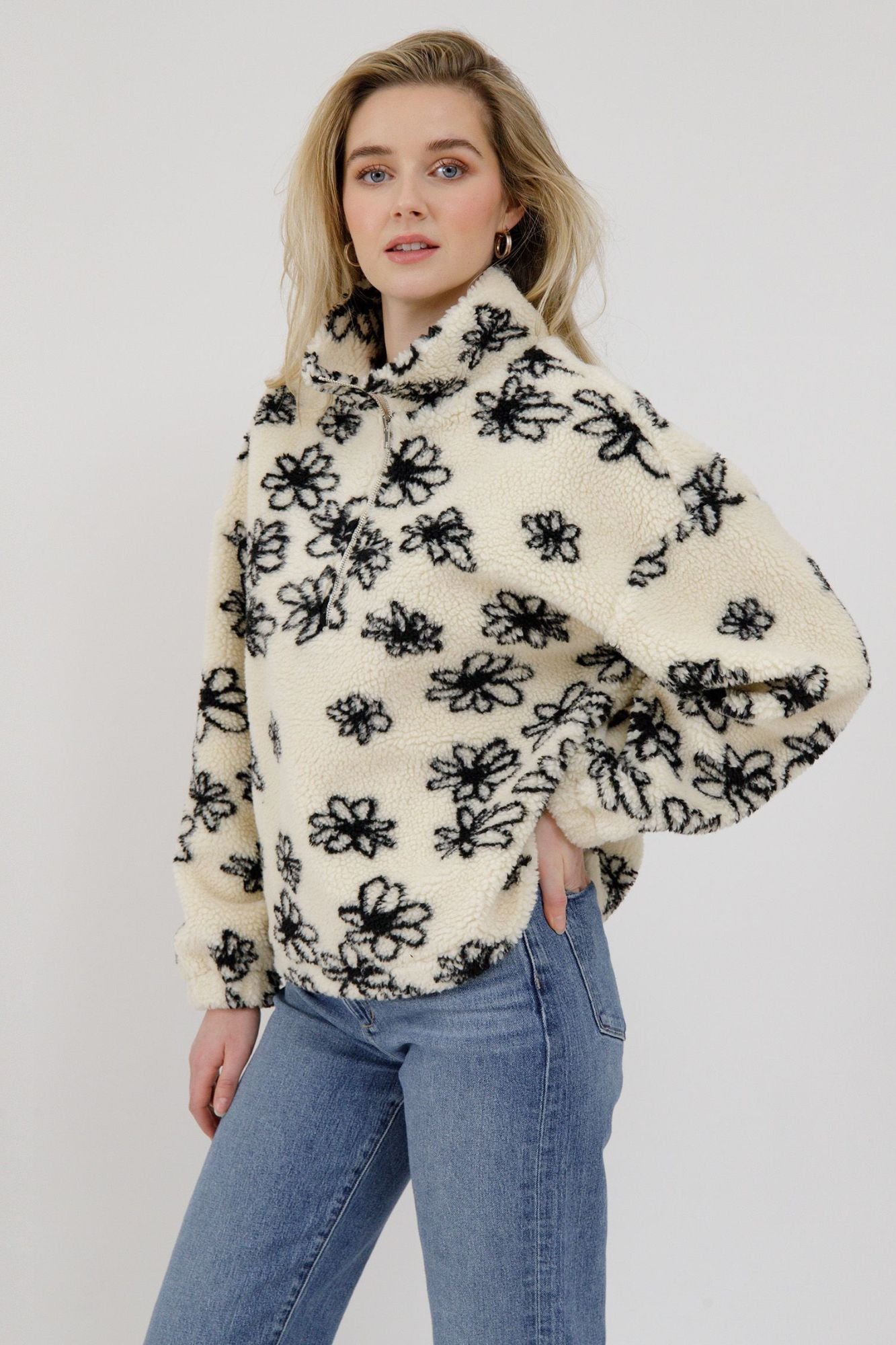 Wrap yourself in cozy warmth with our 1/2 Zip Sherpa! Featuring a half zip closure, cinch waist, and boxy, oversized fit, this top hits just past the hips and allows for a loose fit in the sides. Stay true to size for an intentional oversized feel. Perfect for chilly days, you'll never want to take it off!