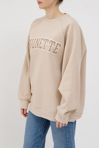 Get the ultimate cozy-chic look with the Brunette NY Boyfriend Varsity crew. With an oversized fit, raglan shoulder, and slouchy sleeves, this crew will keep you warm and stylish. Made from our signature cotton-polyester fleece blend, this piece is perfect for everyday wear. Stick to your usual size for a relaxed look, or size down for a more fitted style. Get cozy in style with Brunette The label!