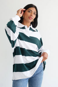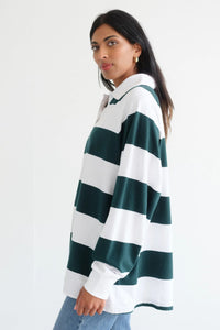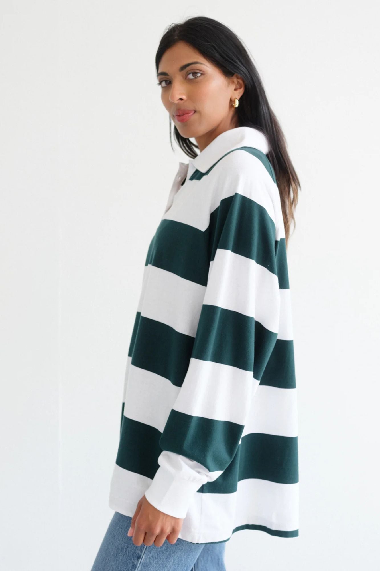 Experience timeless style and comfort with the Classic Rugby Polo Shirt. Its oversized fit and wide body gracefully fall just below the hips, offering a relaxed yet polished look. Thoughtfully designed with ribbed cuffs and a button-up collar, this versatile piece effortlessly complements any wardrobe, making it an essential staple for everyday wear. Elevate your casual wardrobe with ease and sophistication.