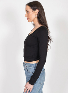 Introduce Tya Scoop Neck Tee into your wardrobe for an easy style upgrade! This fitted tee is a winning combo of cozy and chic, perfect for any outfit you can throw at it. So comfortable, you won't want to take it off! The model is wearing a S/M.