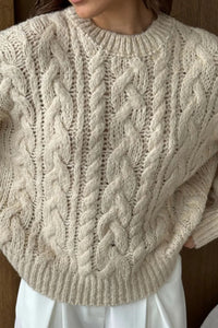 The Mara Sweater brings timeless cable knit charm with a contemporary twist. Featuring bell-shaped sleeves crafted from the softest knit, this piece reimagines a wardrobe staple with fashion-forward flair. Pair it with tailored trousers for polished sophistication or throw it over your favorite jeans for laid-back elegance. Effortlessly chic, endlessly versatile—your new go-to layer awaits.