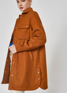 The Azzaro Coat is an oversized shacket, featuring a slightly longer length, chest pockets and snap buttons.