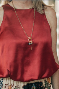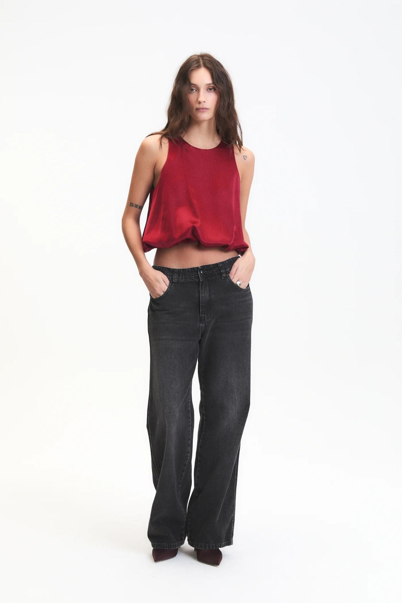 Effortlessly chic, the Leonard Top brings a touch of elegance with its luxe satin fabric and playful balloon silhouette. The sleek round neckline and sleeveless cut keep things breezy, while a hidden back slit with button detail adds an unexpected twist. Designed to fit true to size, this versatile piece transitions seamlessly from day to night.