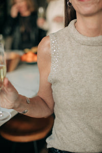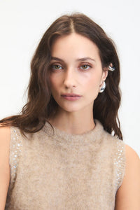 Wrap yourself in luxury with the Myles Knit Vest, where soft mohair meets playful sparkle. This relaxed-fit essential features a classic round neckline and eye-catching rhinestone details dancing along the armholes and sides. Perfect for layering over your favorite tee or dressing up with tailored pieces, it's the cozy-chic piece your wardrobe's been waiting for.