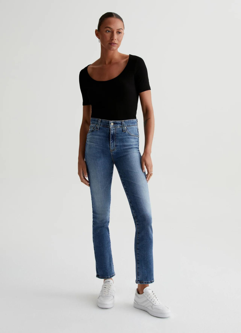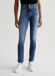 Mari is a high-rise straight leg jean featuring a medium indigo wash with a 15-year vintage fade. Mari offers a flattering high-rise waist and fits easy around the hips, finished with a straight leg and subtle slim leg opening. This women’s straight jean is designed in 10 oz. Rouge Advanced Stretch Denim for a comfortable feel. Model is wearing size 26.
