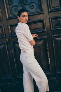 Elevated wide-leg silhouette with a flattering high-rise cut that elongates and defines. Constructed from premium stretch denim that moves with you while maintaining its structured shape. The understated wash and relaxed fit create a versatile piece that transitions seamlessly from casual to polished looks. A wardrobe essential that pairs effortlessly with everything.
