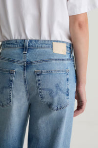Meet the Saige Wide Leg—a relaxed, effortless jean that delivers comfort without compromise. Crafted from Lead Comfort Stretch Denim sourced from Japan's prestigious Kaihara Mill, this mid-rise style features a generous wide-leg silhouette that flatters and moves with you. The Western Front wash showcases intentional whiskering, fading, and distressed detailing in a versatile medium-light blue, while the substantial yet stretchy fabric ensures all-day wearability. Perfect for those who refuse to choose between style and comfort.