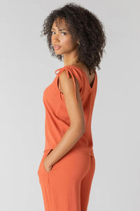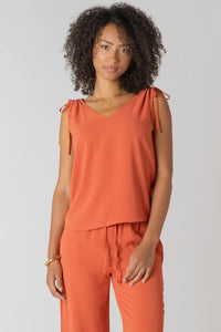 Effortless elegance meets versatile style with this sleeveless tie-shoulder top. The flattering V-neckline draws the eye while adjustable shoulder ties let you customize the fit to suit your frame. Soft, feminine details make it perfect for layering or wearing solo—dress it up for brunch or down for casual weekends. A wardrobe essential that transitions seamlessly from season to season.