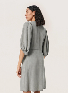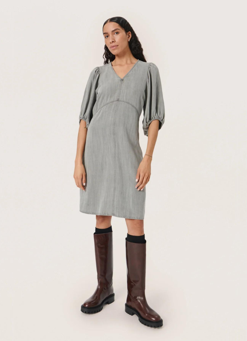 Looking for a dress that works on any day of the week? Look no further than the Friday Dress! This 3/4 sleeve denim dress in grey is perfect for any occasion. Simple, stylish, and comfortable - it's a no-brainer for chill days or nights out.
